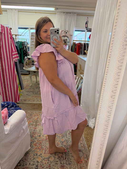 Flutter Sleeve Lilac Gauze Dress