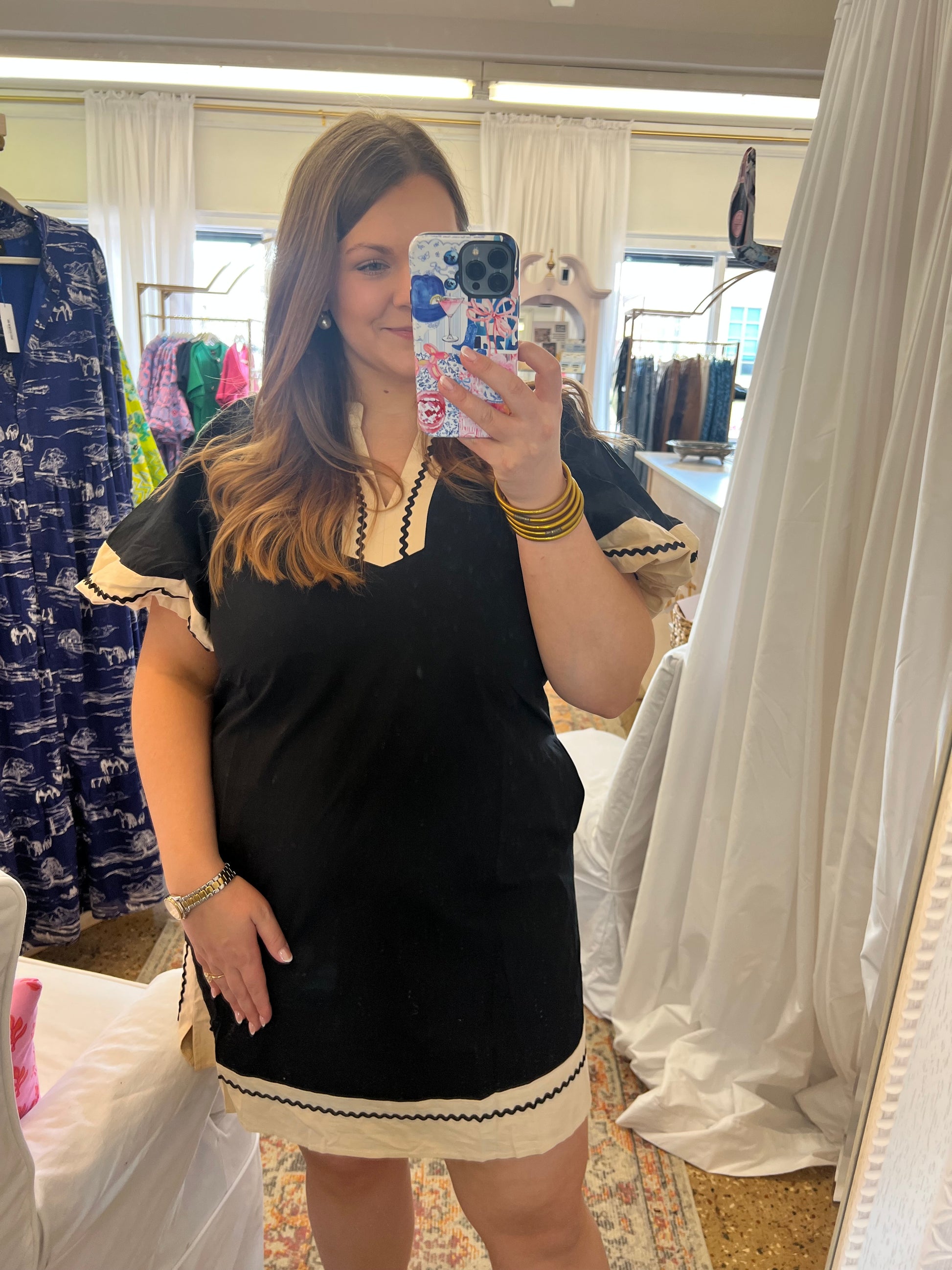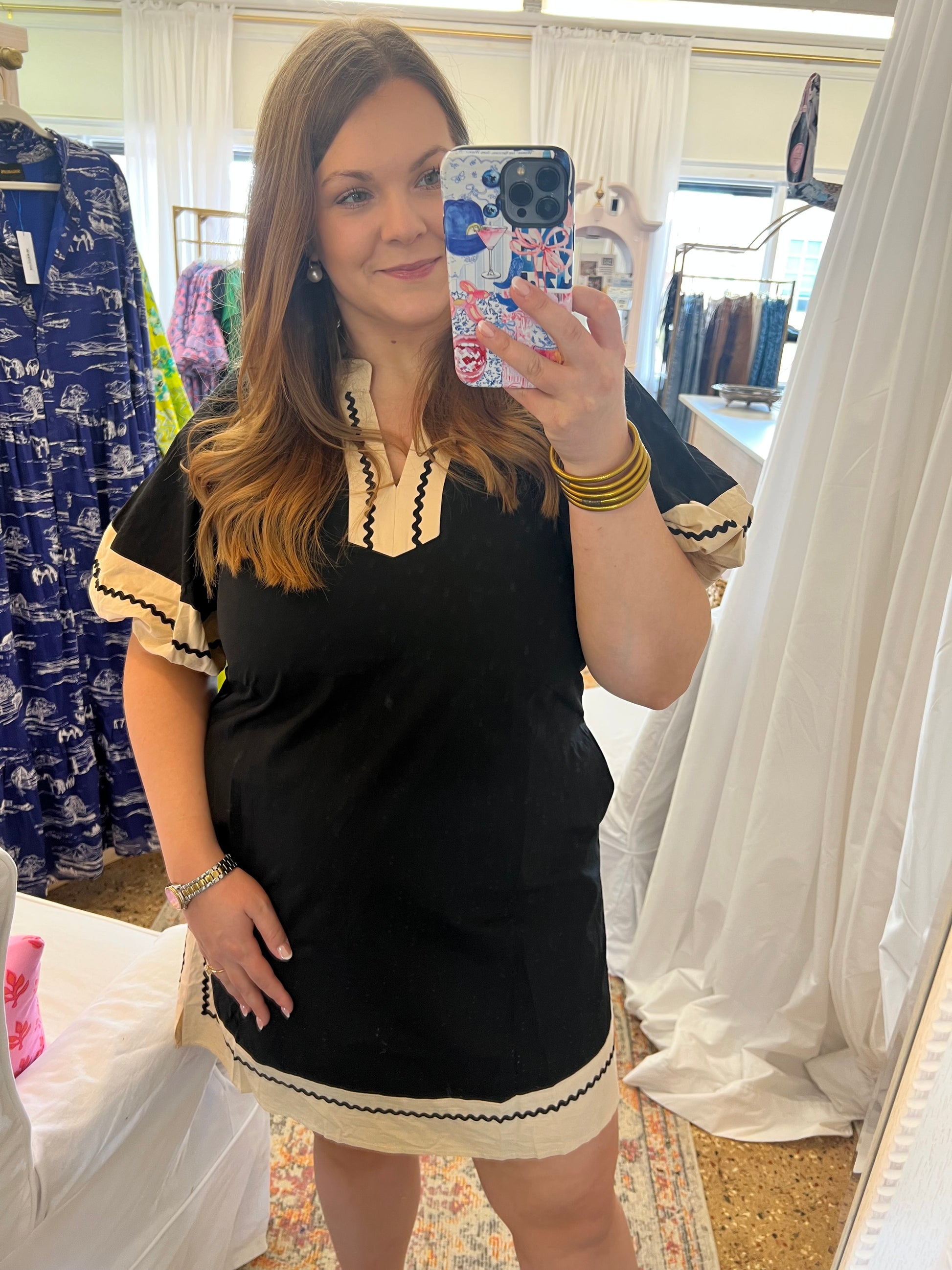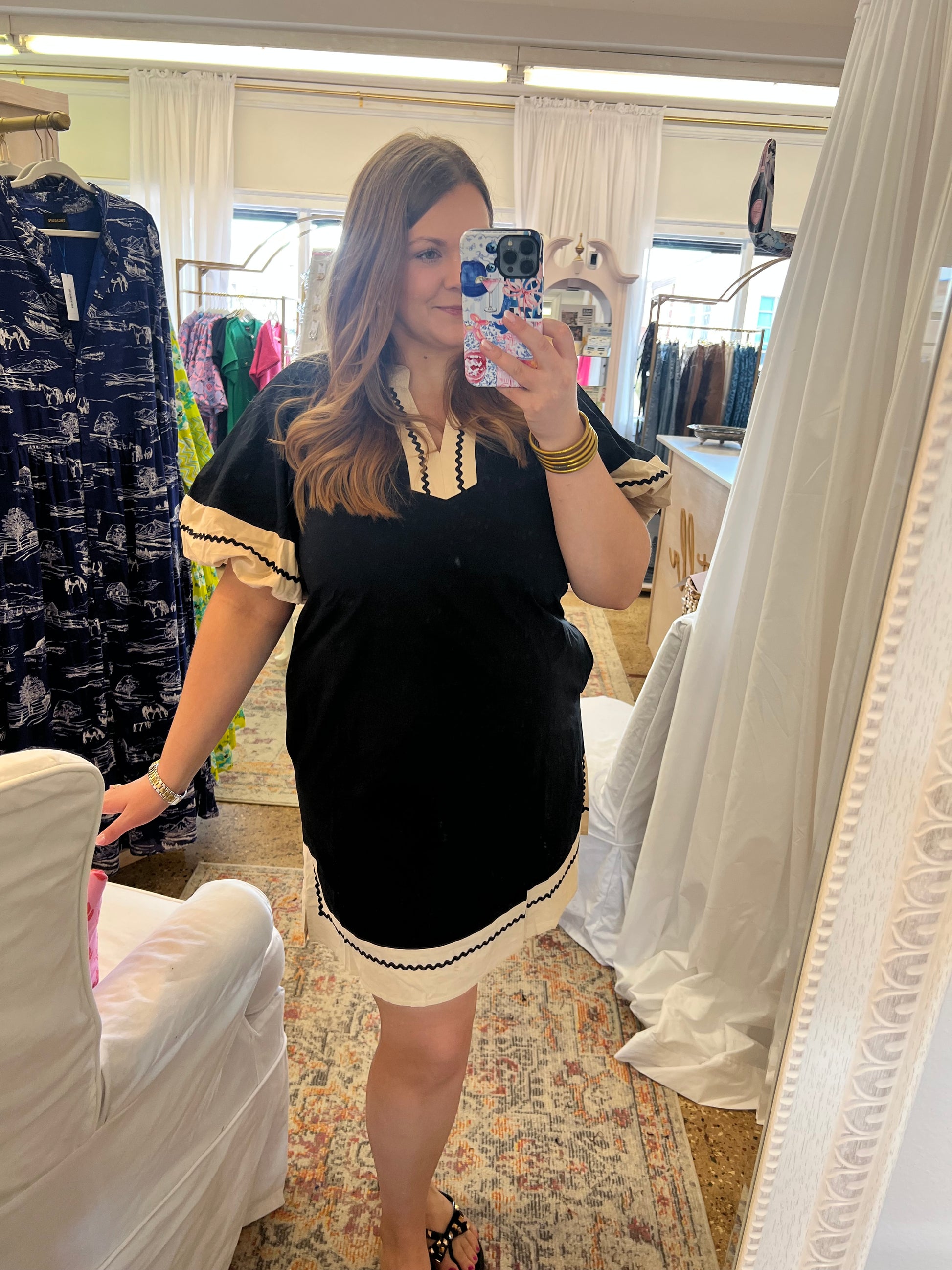 This will be your most worn dress this season! This dress is perfect to pair with sneakers or dressed up with cute mules. Every girl needs a cute black dress in their closet.