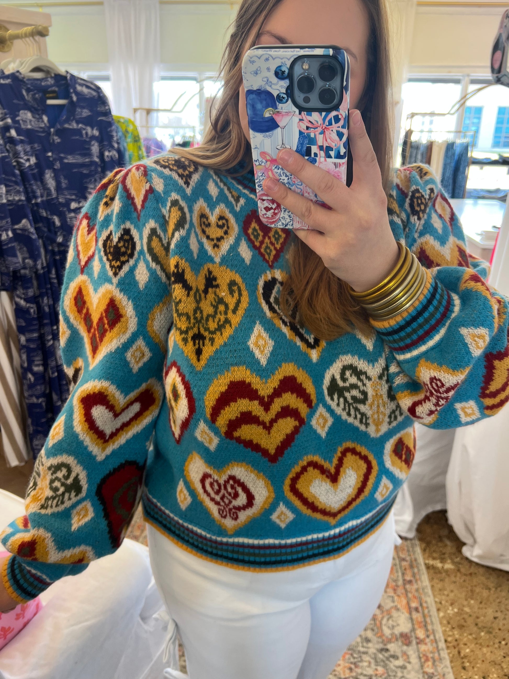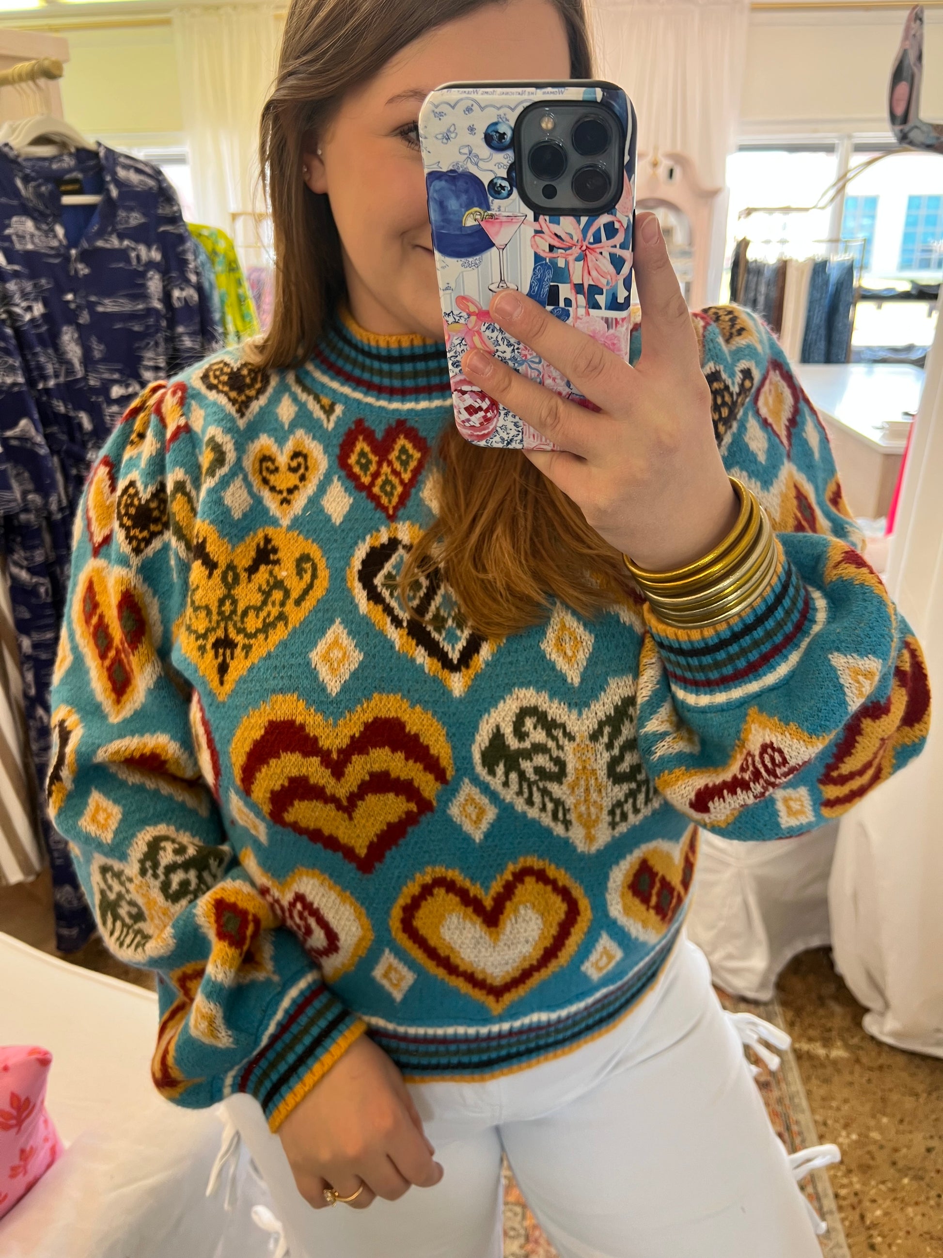 This is the cutest heart sweater! The shorter length and the slight puff shoulders are perfect. Pair with white jeans for the cutest outfit, or pair with slacks for a business casual look.