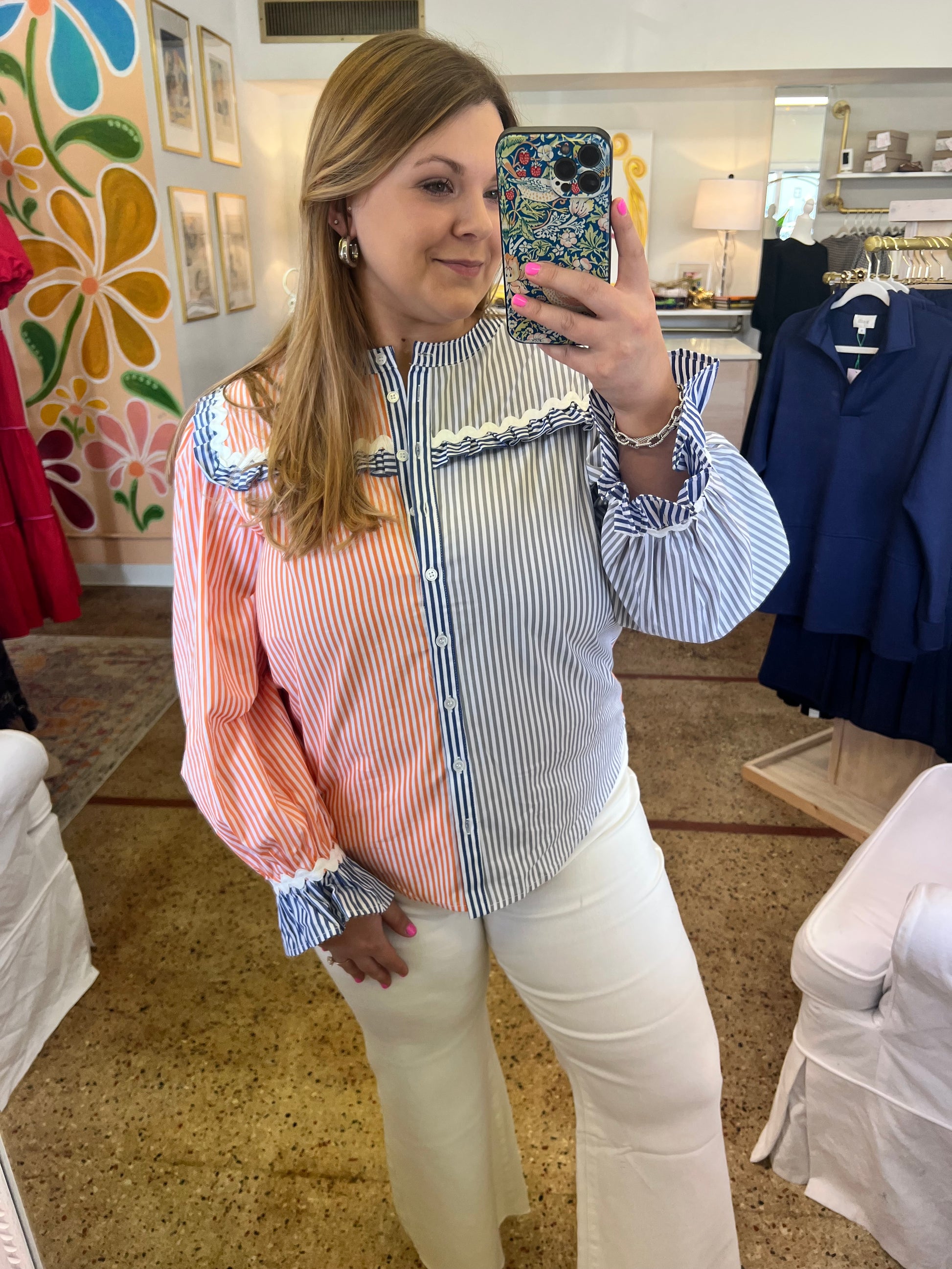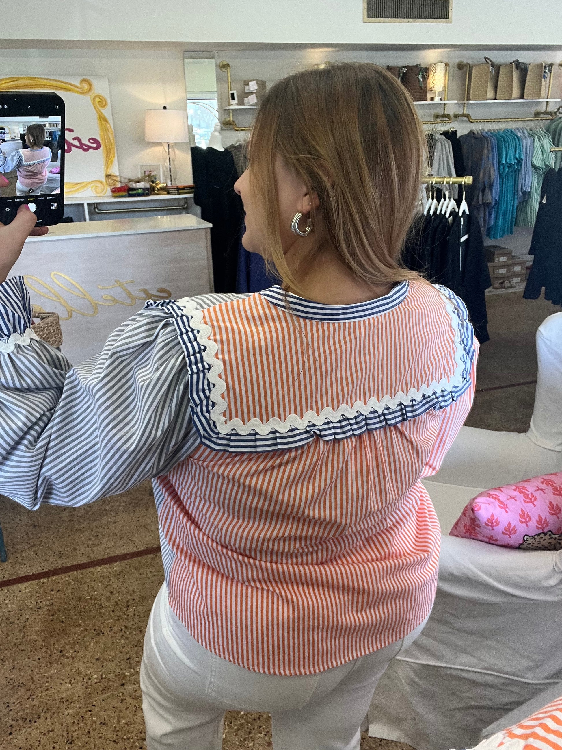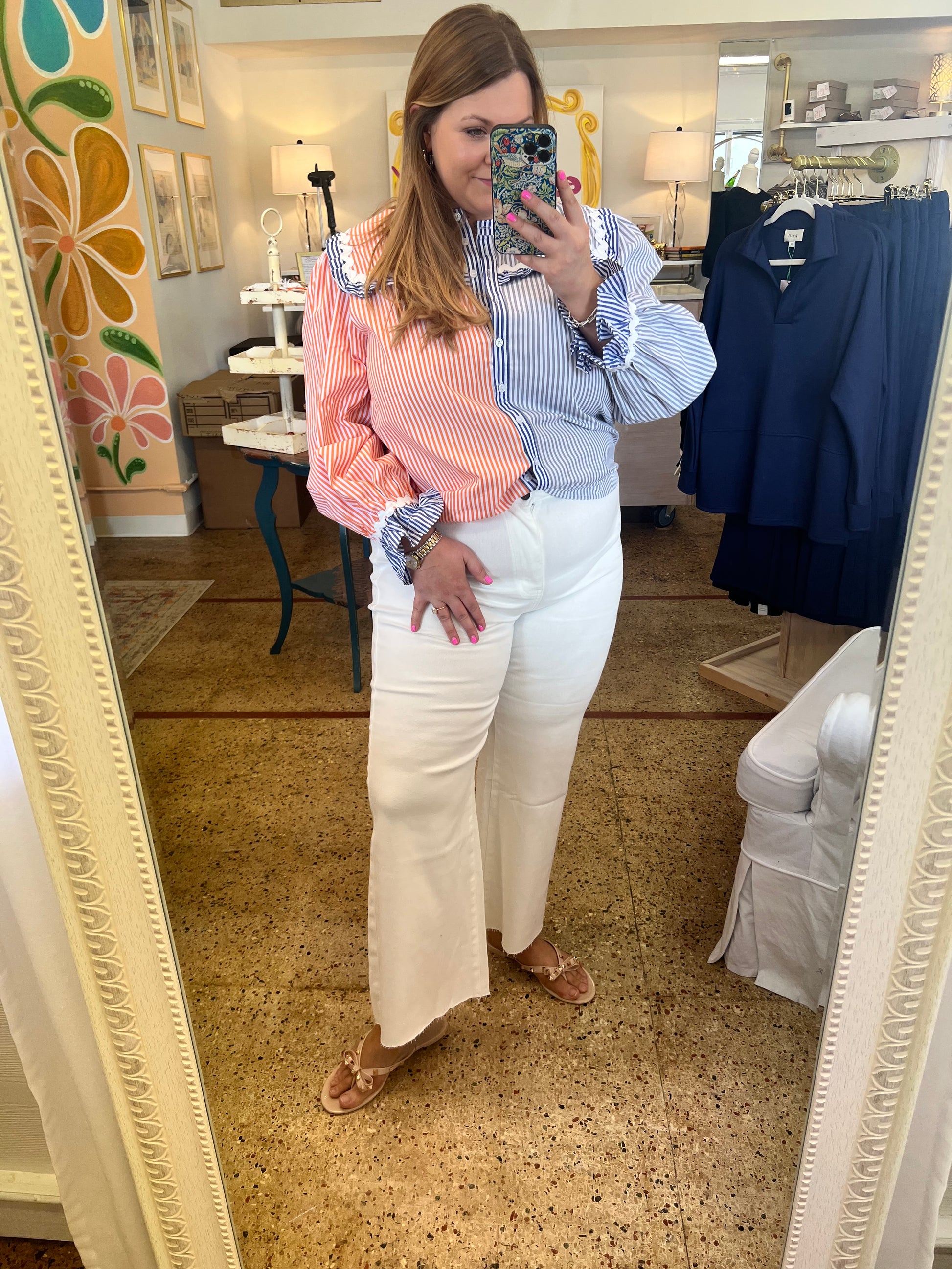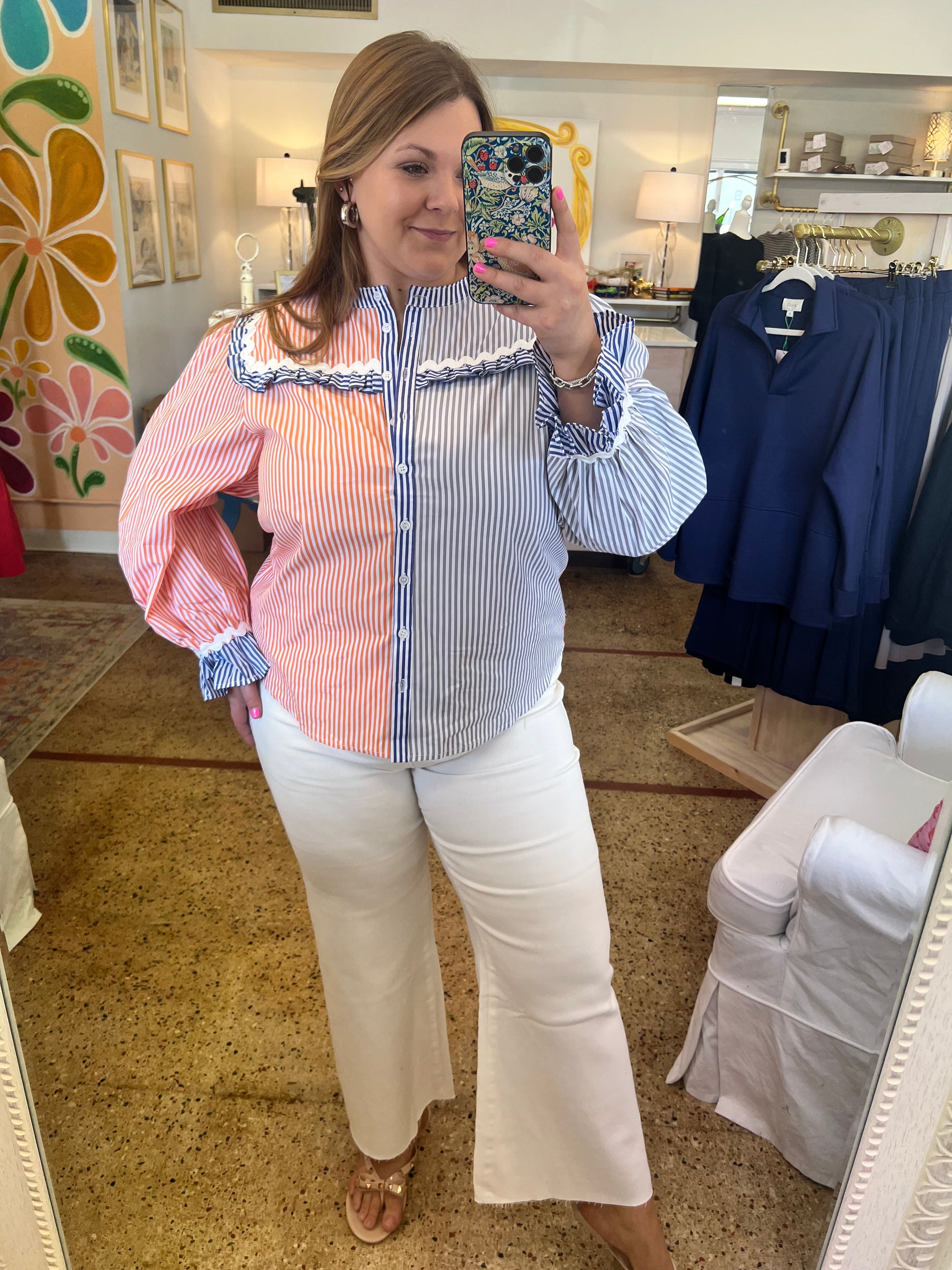 This blouse is soo cute!!! The stripes, and ruffles, AND the ric rak. Perfect for the spring with jeans or white jeans.