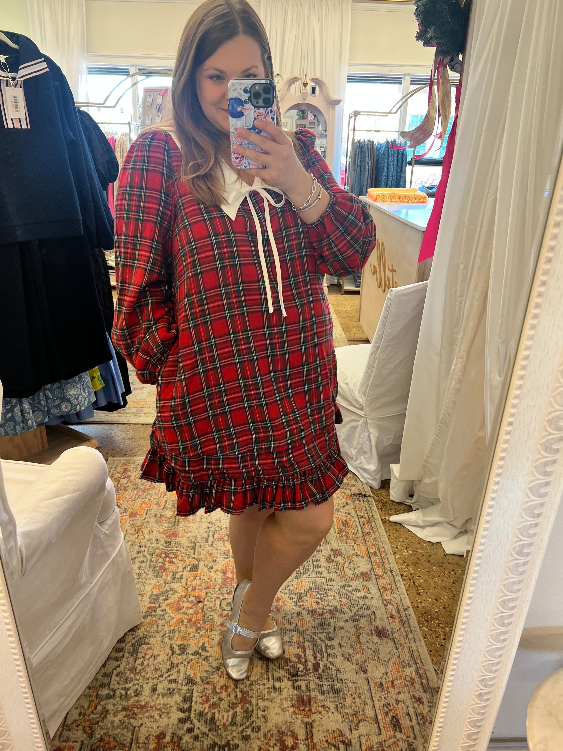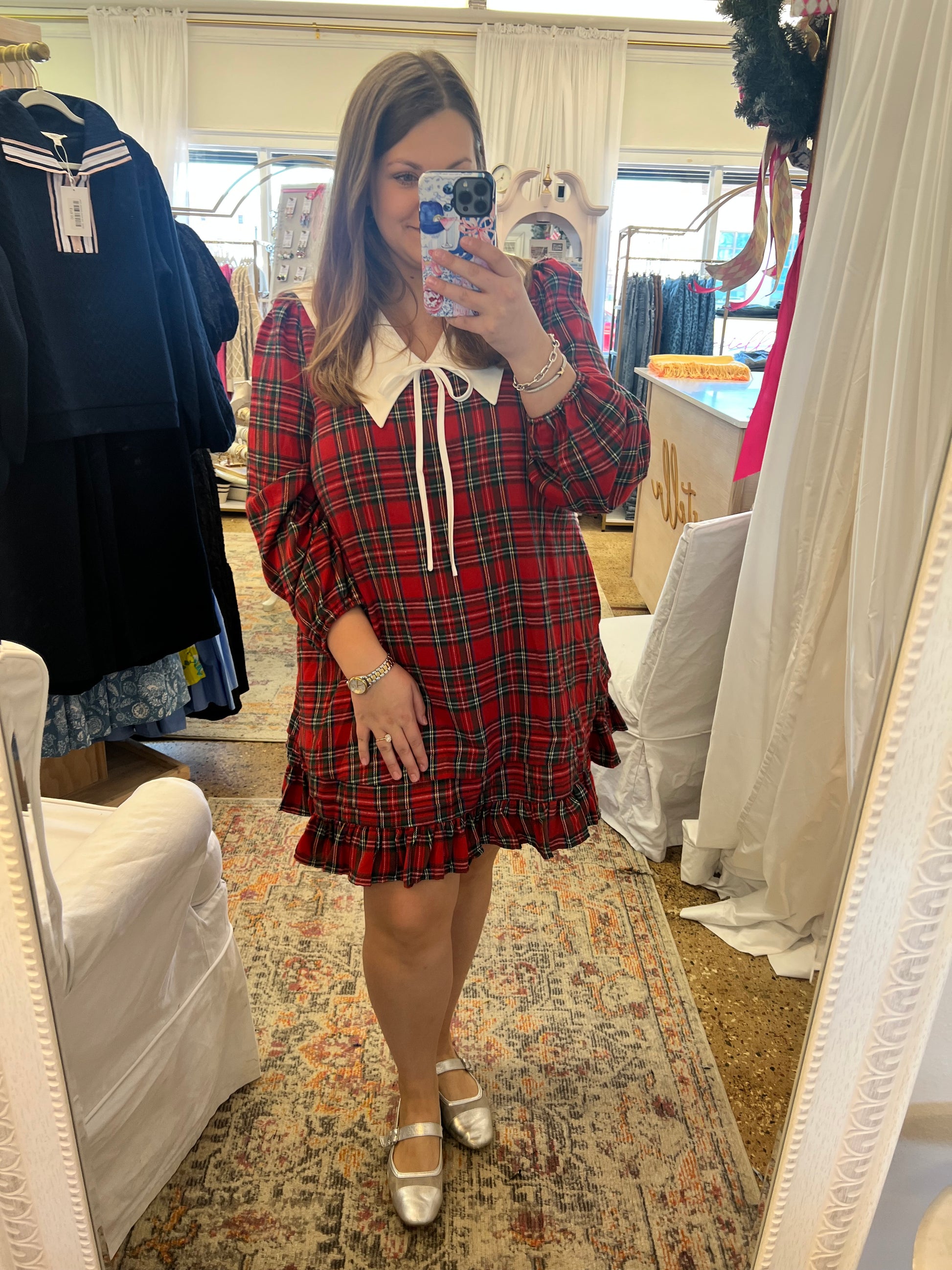 Absolutely obsessed with the collar on this dress! Just the cutest plaid flannel fabric dress. The ruffles around the bottom make this the perfect Christmas dress. Pair with cute ballet flats or boots.